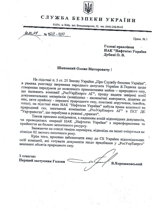начала работать на «РосУкрЭнерго», направив руководителю Энергетической